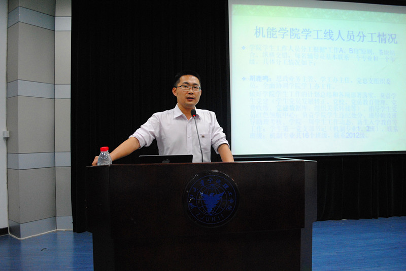 9月26日晚,机能学院2012级新生学校规章制度学习讲座在nf103举行,学院思政主管胡鹿鸣老师、教务办陈高产老师、学工办邬旭东老师参加了本次讲座,会议由胡鹿鸣老师主持。