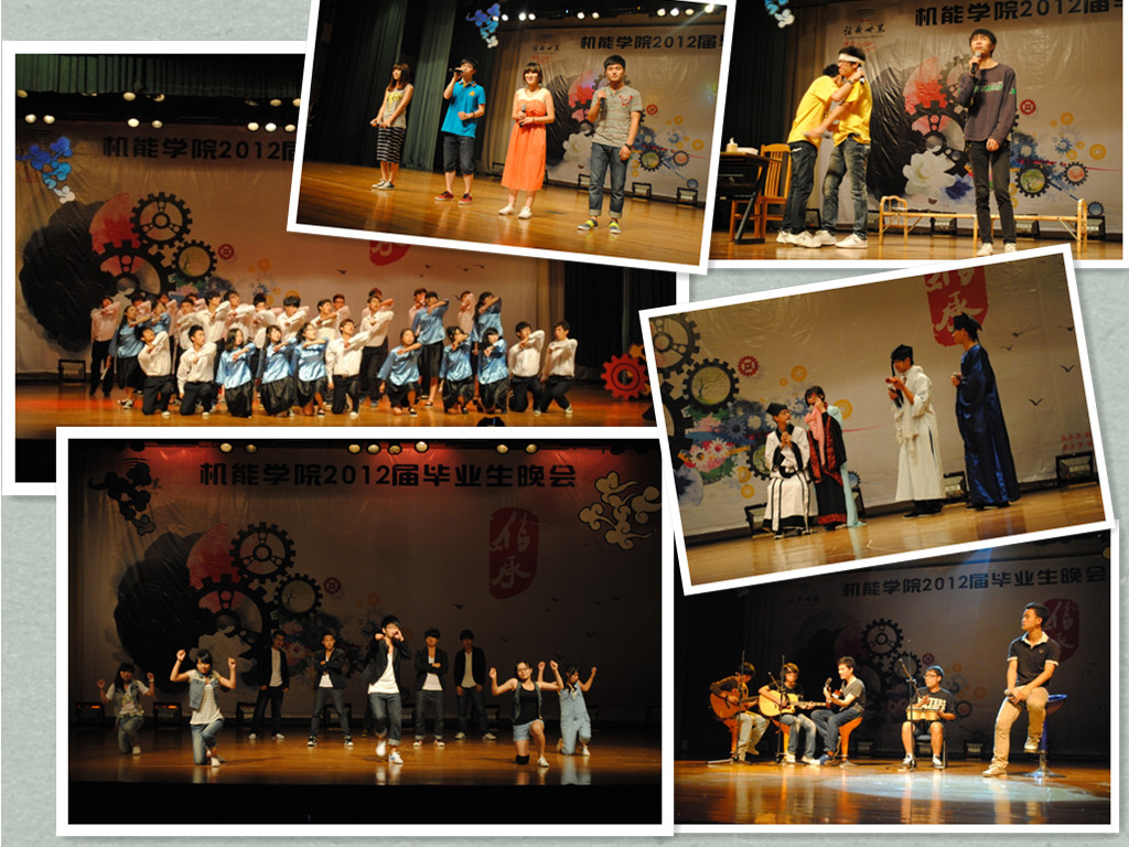 5月21日晚,机能学院2012届“传承”毕业生晚会暨先进个人(集体)表彰大会在可珍讲堂隆重举行。学院党总书记吴春、副院长李建新、党政办主任郑剑、思政主管胡鹿鸣,思政副主管吴琼、辅导员周丹丹、茅启伟、毕业班班导师李继强、沈祥智等老师出席,机能学院08级毕业生和各年级学弟学妹近千人观看了本次晚会。