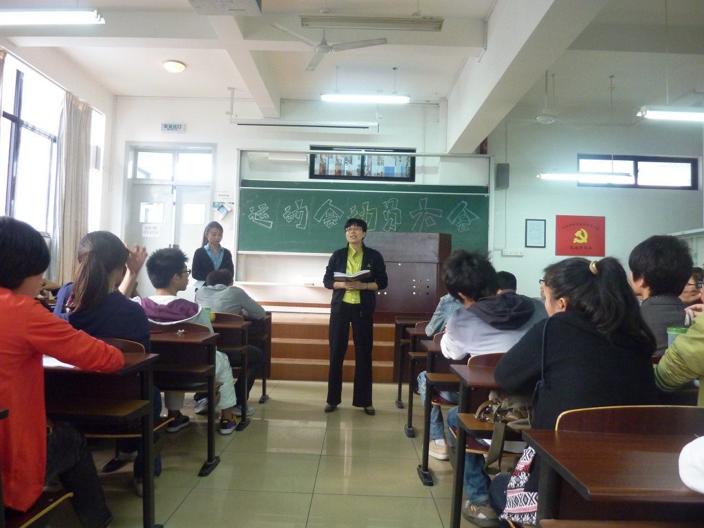 会议开始,吴春书记进行慷慨激昂的讲话,铿锵有力的话语使全场的气氛迅速高涨。首先,吴老师表扬了11级新生运动员们在篮球以及分院运动会上的突出表现,就此次运动会的筹备也给予了鼓励与肯定。同时,吴老师也对同学们在第十届学院运动会上再创辉煌充满期待,更是肯定了往届学院运动会上老生取得的优异成绩和所体现的精神风貌。接着,机电分院的“三朝元老”赖光泽、胡静娜、徐紫娟为新生运动员提出若干如何准备比赛以及调整心态的建议,并对新生运动员们给予了厚望。最后,胡鹿鸣老师历数过往运动员在运动场上的顽强、挑战自我的表现,鲜明真实地再现机电强者风采。胡老师的“机电人个个都是铮铮血气好汉,我们始终坚持着团结朴实的精神”更是切中肯綮,激发了在场所有人的激情。