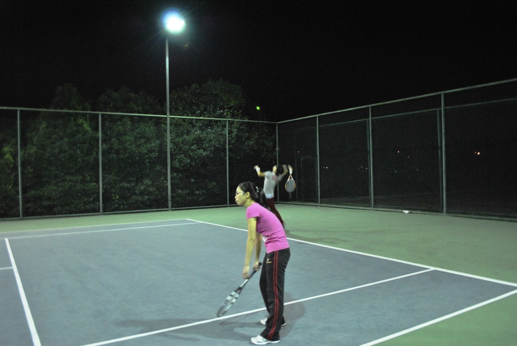 10月19 日下午5:00,机电分院与生化分院网球赛在网球场激烈进行。此次比赛为学院网球赛半决赛,所以双方队员都为争取下一场比赛而努力。