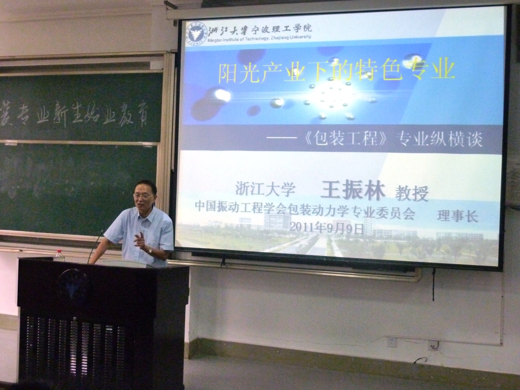 为巩固11级新生专业思想,加强新生对本专业的认同感,以帮助大一新生尽快适应大学学习生活,9月9日下午13:30,机电分院包装工程专业在SF106开展由中国振动工程学会包装动力学专业委员会理事长王振林教授主讲的新生始业教育之包装工程专业纵横谈讲座。