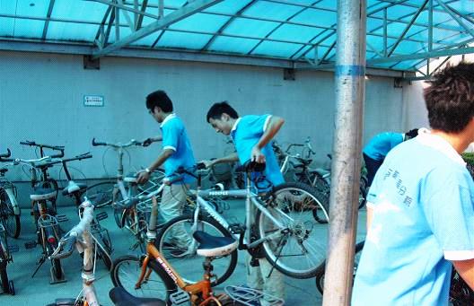 “呀!这是谁做的,车好整齐啊!”“是啊!是啊!我车被擦得这么干净,我都不认识了。”诸如此类的话,在校园内的一个个车棚内响起。机电分院的骨干们在下午时间,把学校车棚内的车有序的排放了一下,并且把车辆擦洗了一下。看到同学们一个个惊讶的目光和赞赏的表情,骨干们都觉得汗没有白流。