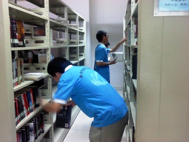 刚进入鄞州图书馆,一阵浓郁的书香就迎面而来,骨干们都不由自主地融入到了读书的氛围中。工作人员简短地安排好工作后,大家分为三组,开始了不同楼层和大厅的相关工作。在工作中骨干们都深刻地体会到,平时看似容易的工作自己做起来是多么的艰难。负责摆放图书的同学说,他们要在数以万计的图书中找到某一本书的楼层和编号,这让从来没有接触过这项工作的同学感到十分辛苦。在大厅服务台帮忙的同学也表示,平时习惯了接受图书馆工作人员的服务,今天第一次为别人服务感到很新奇也很紧张。