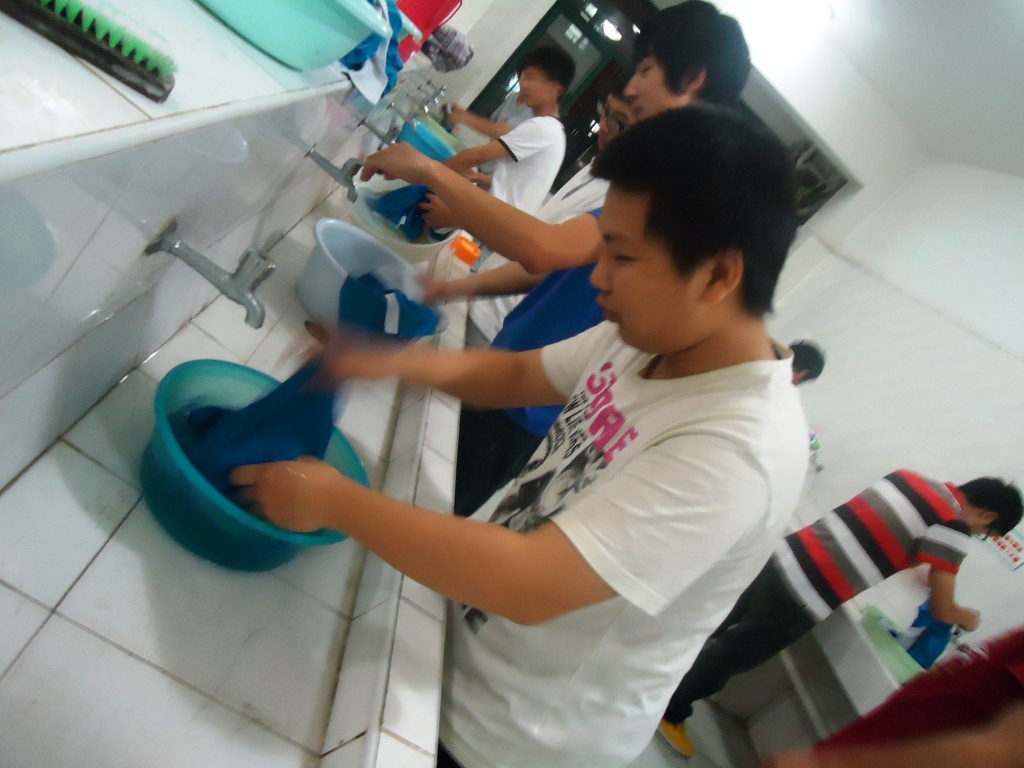 食堂对于我们每一个人来说都不陌生,而食堂的卫生更是每一位同学都非常关心的。但是,对于很多同学而言,吃完饭拿一下餐具这类小事,总是不乐意做。机电分院骨干们做的就是这些小事,他们在中午和晚上就餐高峰期,帮助食堂阿姨收拾餐具,同时在就餐结束后和食堂阿姨一起擦餐桌、打扫地面。期间很多同学看到机电分院身着同一蓝色服装的骨干们在收拾餐具,都自觉的把餐具送到指定处。