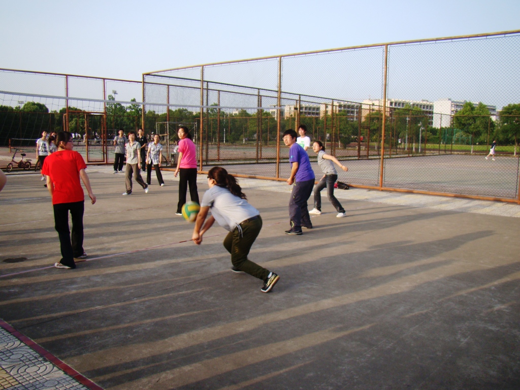夕阳下,排球在双方赛场上来回腾跃,与女排姑娘们拉长的背影构成一幅美丽的画面。随着比赛时间的进行,两队比分你追我赶,场上观众们的心情也随之此起彼伏。最终,裁判员的哨音结束了比赛。机电以小比分的差距输掉了比赛。