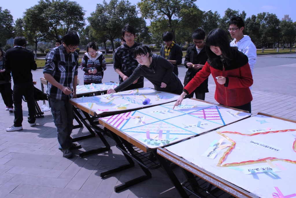 整个活动分为四个部分,分别是扎气球游戏、商铺评比、投意见箱和电脑免费维修。活动刚开始,过往的同学纷纷被吸引了过来,露天广场的气氛便活跃了起来,同学们抢着扎气球,积极投票……最吸引眼球的便是商铺评比,同学们兴奋地在一系列的商铺名字中寻找自己所心仪的,一边贴上彩纸还一边念叨着自己最喜爱的食物。那五颜六色的纸条在风中摇晃着身体,成了一道靓丽的风景。最有趣的属扎气球游戏了,围观的人群时不时传来欢呼声,完成任务的还能获得小奖品,在玩游戏的同时了解维权知识,让同学们获益匪浅。同学们一看到意见箱便打开了话匣子,表达出自己对学校的意见,如:食堂的饭菜太贵等等。