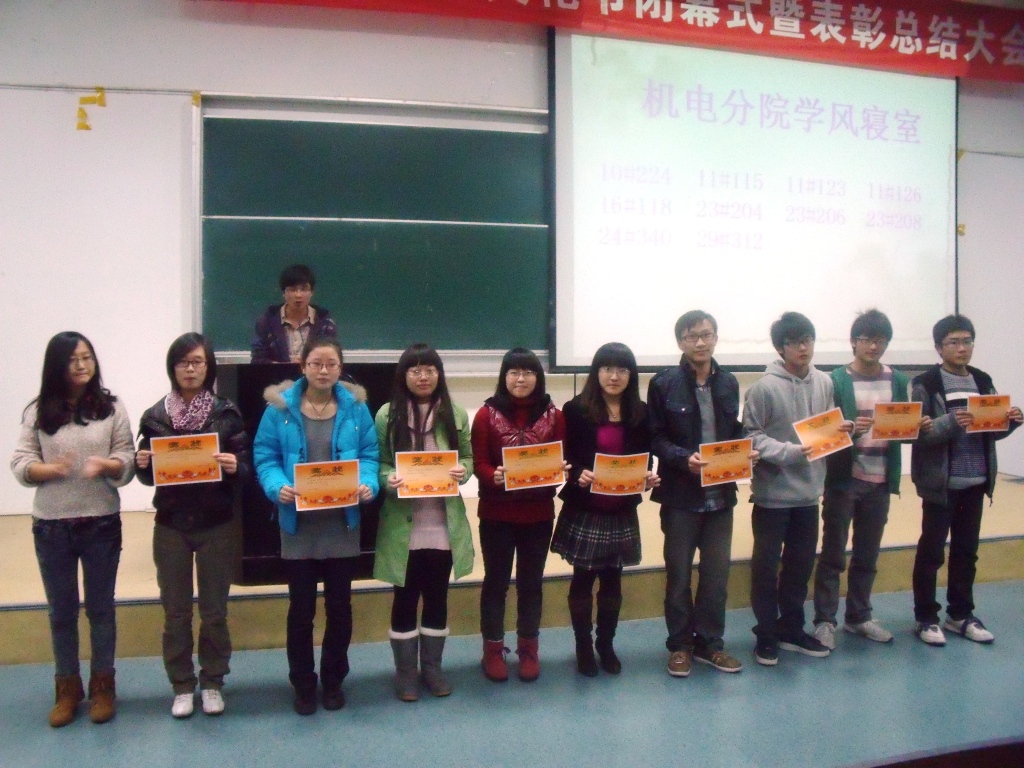首先,大会表扬了同学们参与这次文化节的热情,并肯定了收获的成绩。在机电分院学生学风寝室和阳光体育倡议活动中很多寝室在学习和体育方面都有了较大的提高。平时在寝室的学习氛围变得更加浓厚了。此外大家也都积极参与早锻炼,加强了在体育锻炼方面的意识。