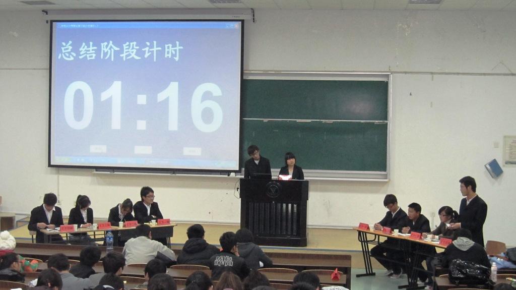 12月10日晚8点,学院第四届新生辩论邀请赛暨第一届启新杯辩论赛第一轮第三场在SB104教室举行。场上双方辩手围绕着辩题“代沟的主要责任在父母还是在子女”展开了一场舌战。正方一至四辩是来自生化分院的吴凯、裘琳琳、王欠薇与胡圆圆同学,反方则由机电分院陈昂、单佳莹、王政天、赵中辉四位同学对阵。