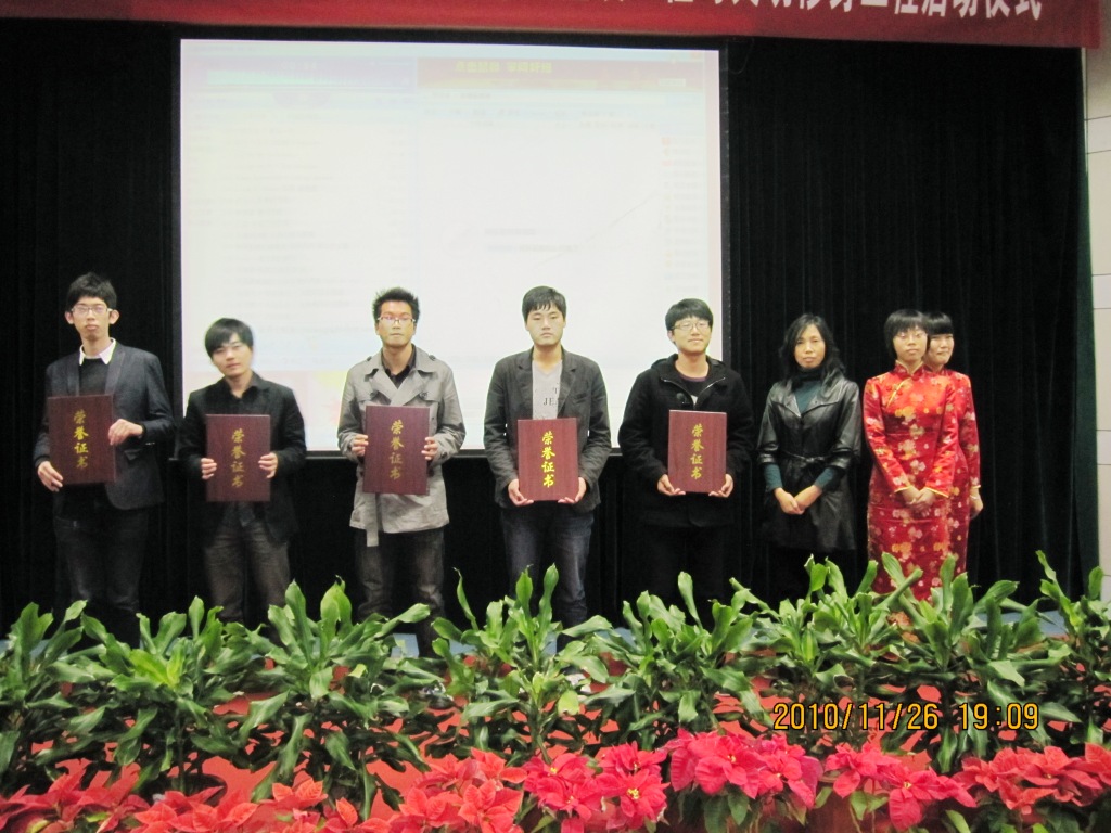 之后,大会进行了优良学风班表彰、颁奖仪式,李建新副院长给获奖班级代表们颁发证书并与之合影留念。