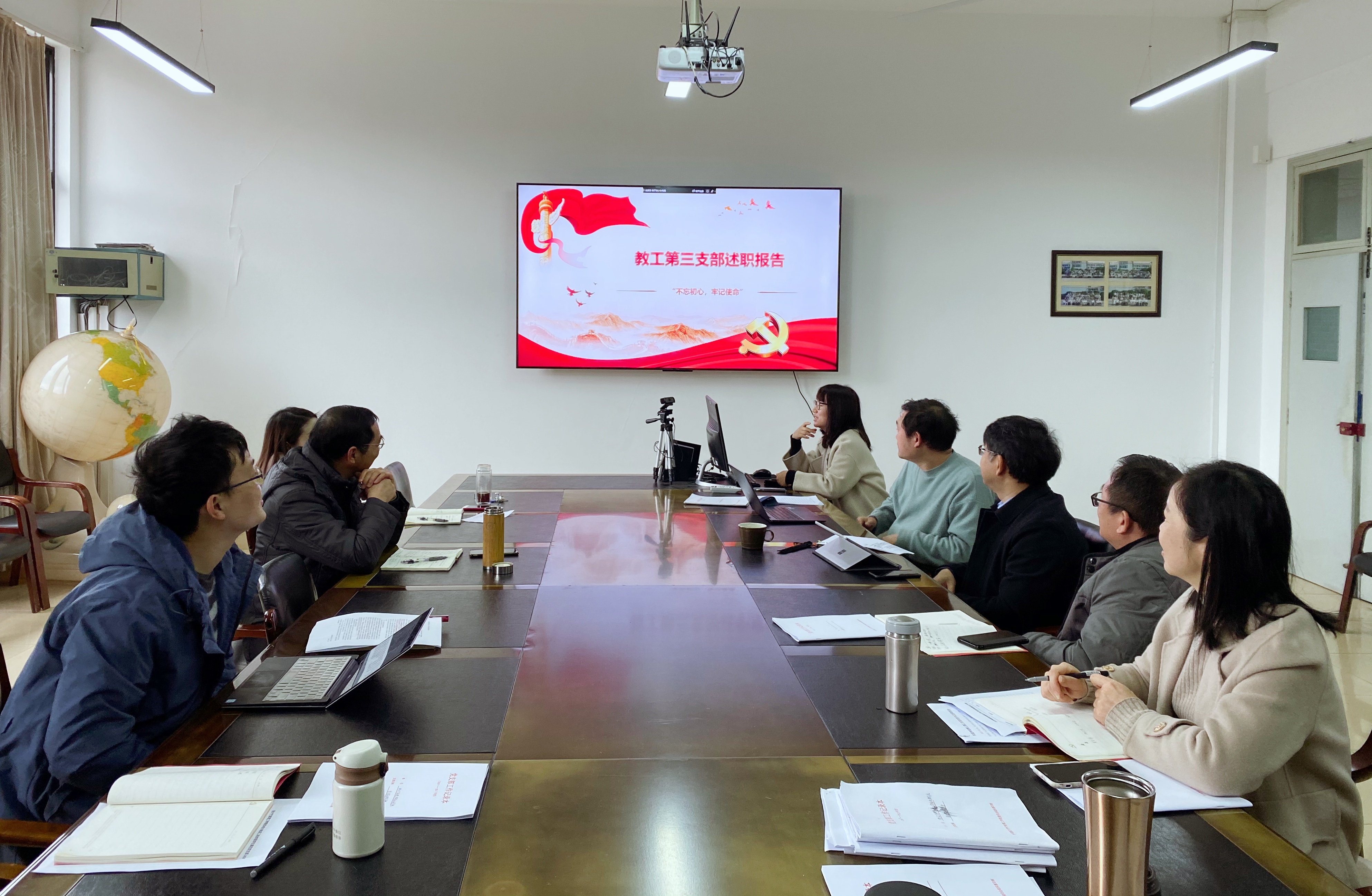 五个教工党支部书记、四个学生党支部书记依次进行了年度工作述职汇报,并对支部存在的问题进行了深入剖析,重点介绍了下一年度各党支部的工作计划。与会党员进行评议打分。