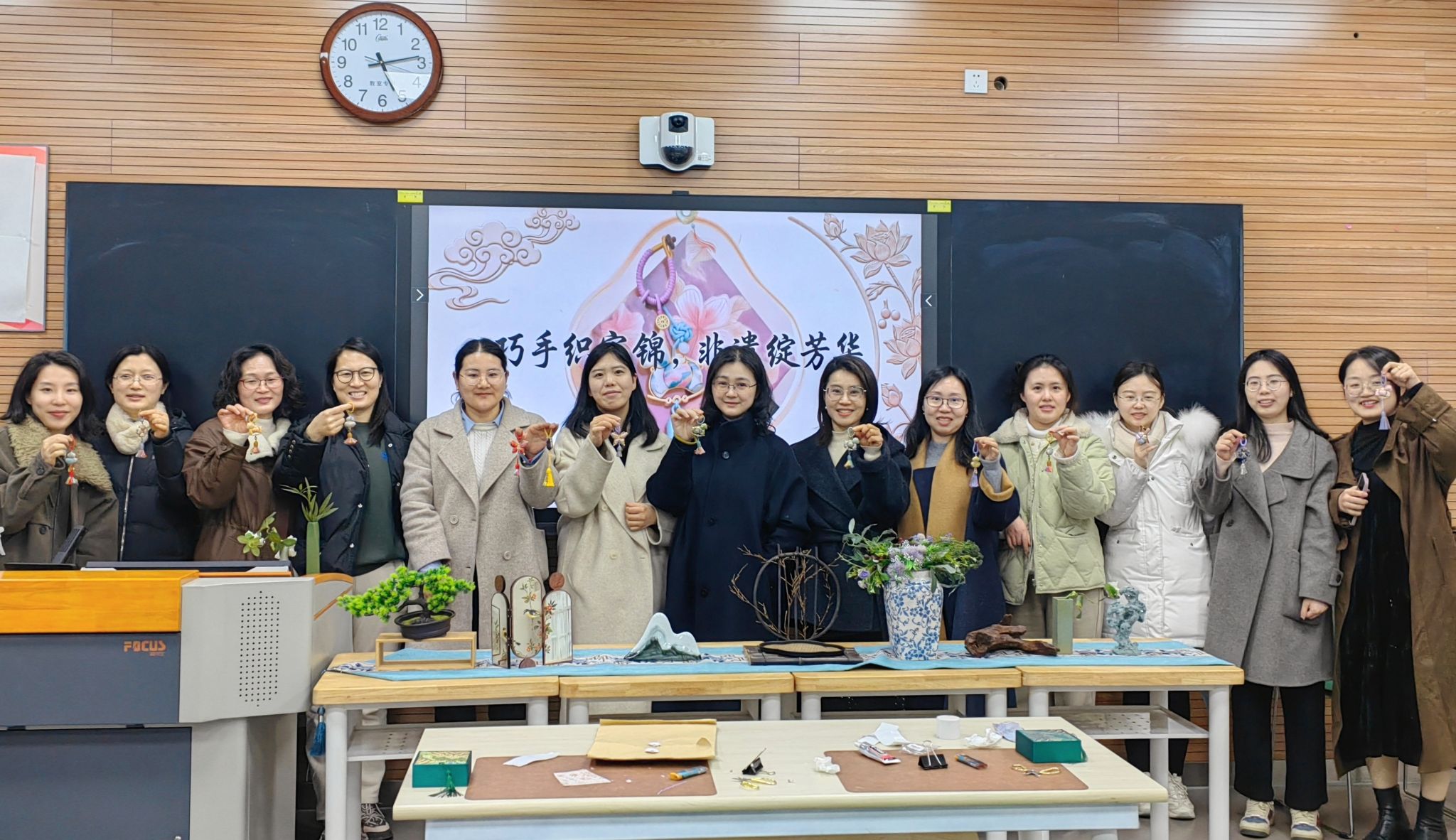 为丰富女教职工的精神文化生活,传承中华优秀传统文化,3月9日下午,机能学院分工会在NB120精心组织了一场“非遗宋锦挂件制作”主题活动。学院全体女教职工欢聚一堂,在指尖流转中感受千年宋锦的独特魅力,共度了一段温馨而富有文化气息的午后时光。