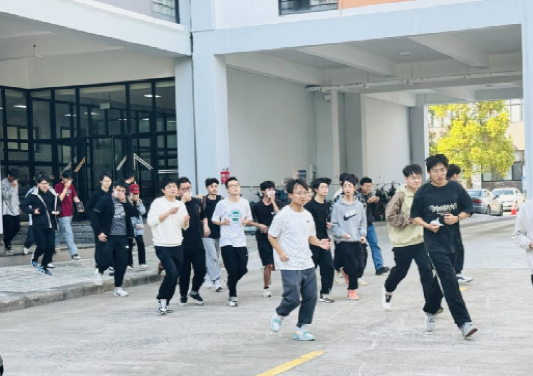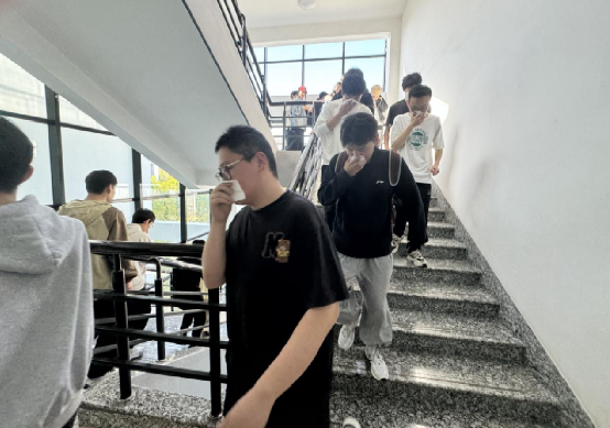 此次消防安全演练现场模拟了NA四楼和学生宿舍突发火灾的情景,随着现场警报的响起,应急疏散预案启动,楼内师生在工作人员的引导下,从消防通道迅速、有序、安全地撤离模拟火灾发生现场。