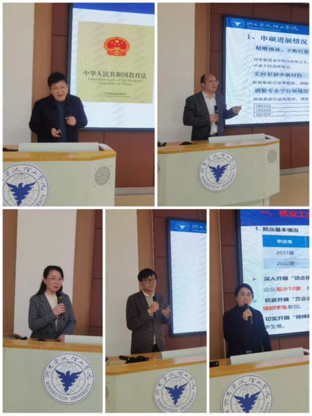 副院长宋瑞银、高能及党委副书记林建英分别布置了新学期申硕、有组织科研、实验场地收费、地方合作和就业、考研、安全稳定等学生教育管理工作。