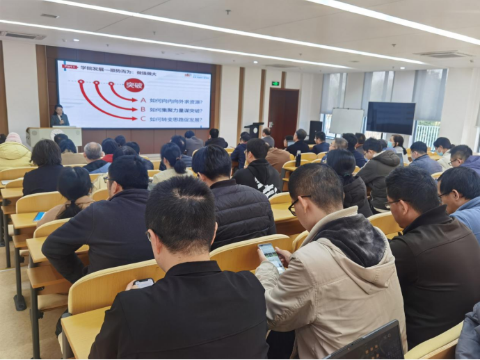 江美芬首先传达了学校2023年寒假读书会和2022年度科研大会会议精神,并在回顾2022年学院取得的工作成绩基础上,指出新学期学院必须要顺势而为、抢抓机遇,不仅要集聚院内资源,更要面向社会要资源,从而进一步做强做大;同时结合学校第五轮绩效岗位聘期考核及第六轮岗位聘任、青年教师发展评价等工作,鼓励全体老师要借势而行、同心奋斗,以更多担当实现更大作为。