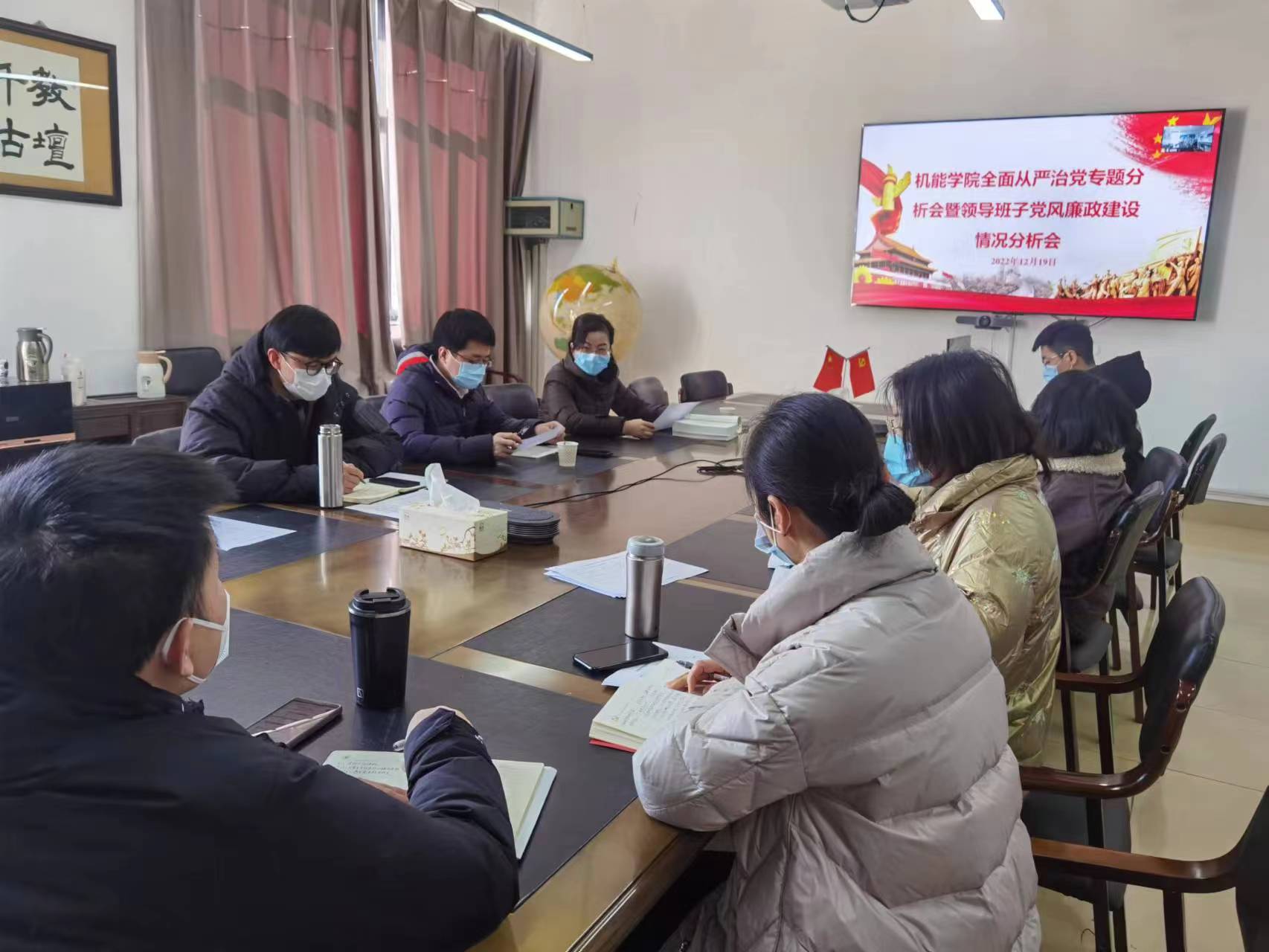 2022年12月19日,机能学院在NA408会议室召开2022年下半年全面从严治党、党风廉政建设专题分析会。学院领导班子、党委委员、支部书记参加会议。会议由学院党委书记江美芬主持。