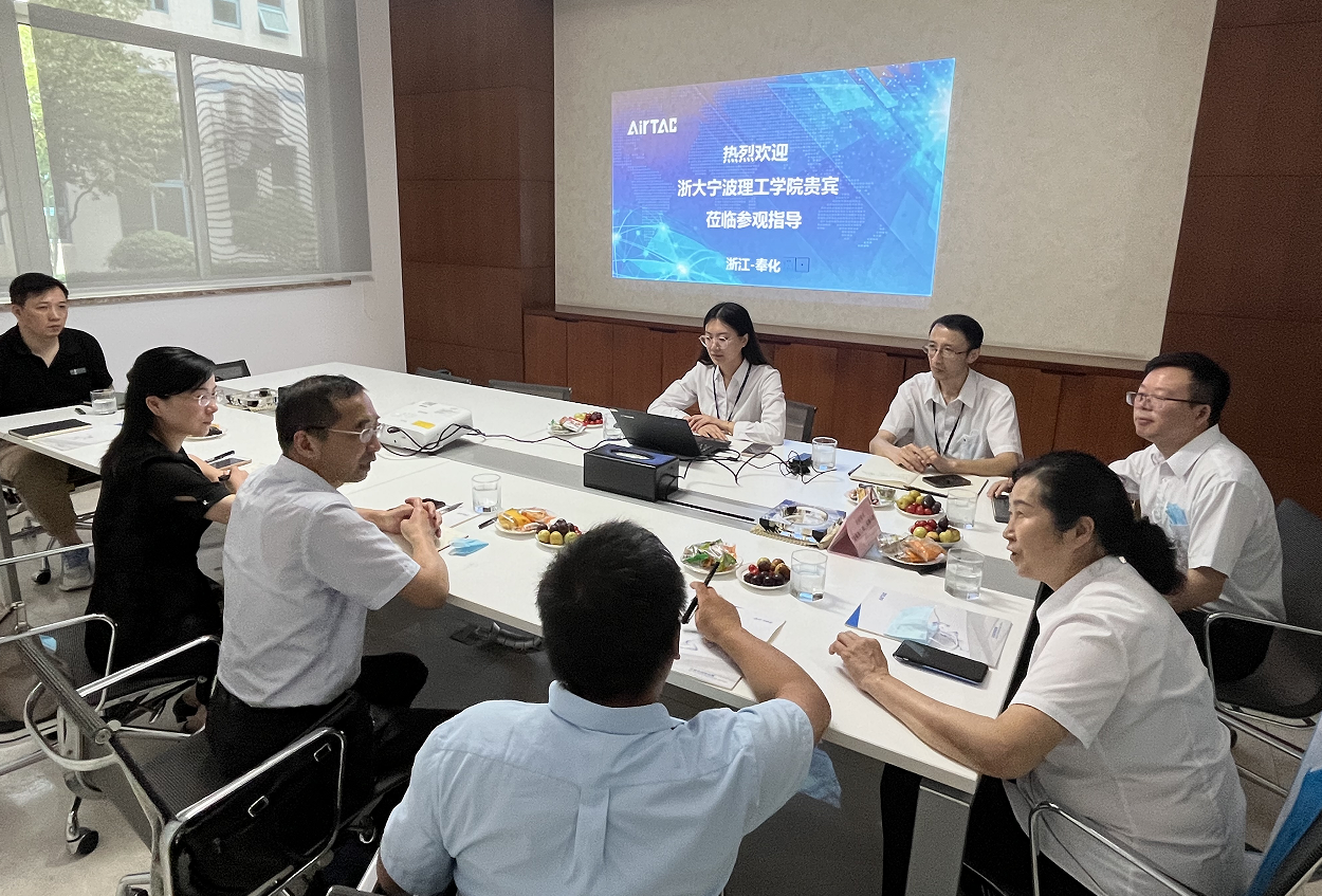 随后,童微星一行来到宁波亚德客自动化工业有限公司。亚德客国际集团总部位于台北,创立于1988年,系全球知名专业气动器材供货商/生产商,研发中心位于宁波奉化区,目前拥有浙江宁波、广东佛山、台湾台南三个大生产基地,有员工30000多人。亚德客国际集团总经理室经理、董事廖锦琳等热情接待。座谈会上,双方共同观看了公司宣传视频,在了解公司文化、产品种类、员工培养、企业荣誉等情况的基础上,就进一步联合人才培养、精准对接企业需求、提升毕业生就业意愿等展开热烈讨论并形成共识,后续校企双方将以顶层设计为统领,以各自需求为导向,以机制建设为保障,进一步加强交流与合作。