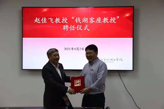 4月2日下午,机电与能源工程学院在NA408会议室举行赵佳飞教授钱湖客座教授聘任仪式。学校领导章献民致欢迎词,为赵佳飞教授颁发聘任证书并佩戴校徽,人事处副处长南月余介绍赵佳飞教授的基本情况,学院党委书记童微星主持聘任仪式。