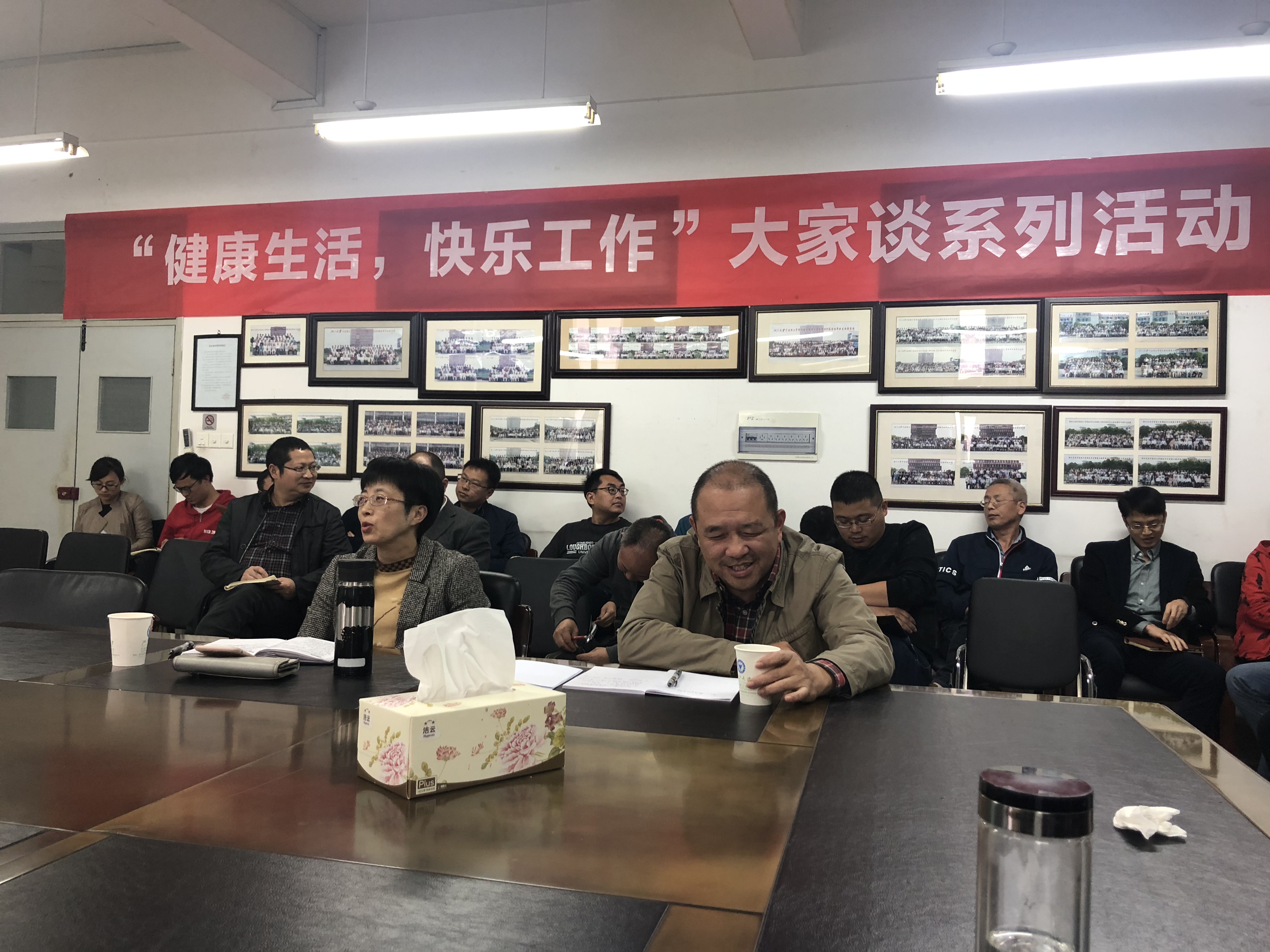 陈光明院长首先对“健康生活,快乐工作”大家谈系列活动的背景及意义做了简要阐述。随后,参会的老师们纷纷结合“健康生活,快乐工作”,谈了自己的理解及目前的工作生活,以及对学校的期许和建议,通过交流,大家舒缓了压力,增进了彼此了解,传递了正能量。老师们认为自己和学院发展是紧密联系在一起的,是命运共同体,一荣俱荣一损俱损,将不计较个人得失,努力为学院发展、学校发展贡献自己的力量。会场气氛热烈,发言踊跃。