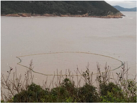 图为台风后实地拍摄的养殖围网图