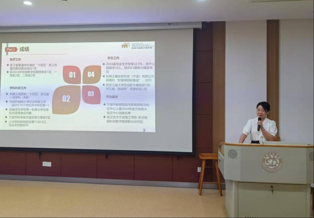 会上,江美芬书记首先热烈欢迎了学院新入职教师,总结了学院2024年上半年取得的主要成绩,传达了学校贯彻党的二十届三中全会精神、落实“一校一策”专题读书会议精神。她强调,要坚持党建领航,统一思想、凝聚共识,抢抓机遇,明确发展优势,找准发展差距,聚力突破攻坚,吹响新时期学院高质量发展的奋进号角。