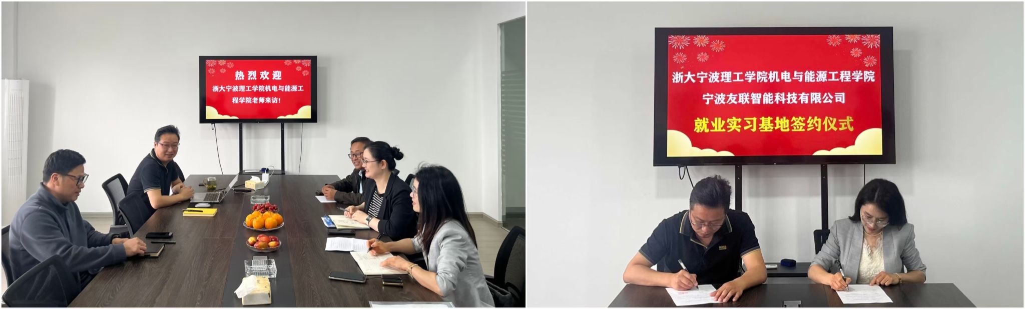 以校友为桥,以合作为舟。此次专项行动成效显著,与宁波迈瑟夫、宁波友联2家企业签订就业实习基地协议,达成多项产学研合作项目,涉及智能装备研发、传统产业升级等领域。不仅为 2025 届毕业生铺就优质就业通道,更开启了校企资源共享、优势互补的崭新篇章,共筑校企产学研融合“生态圈”。