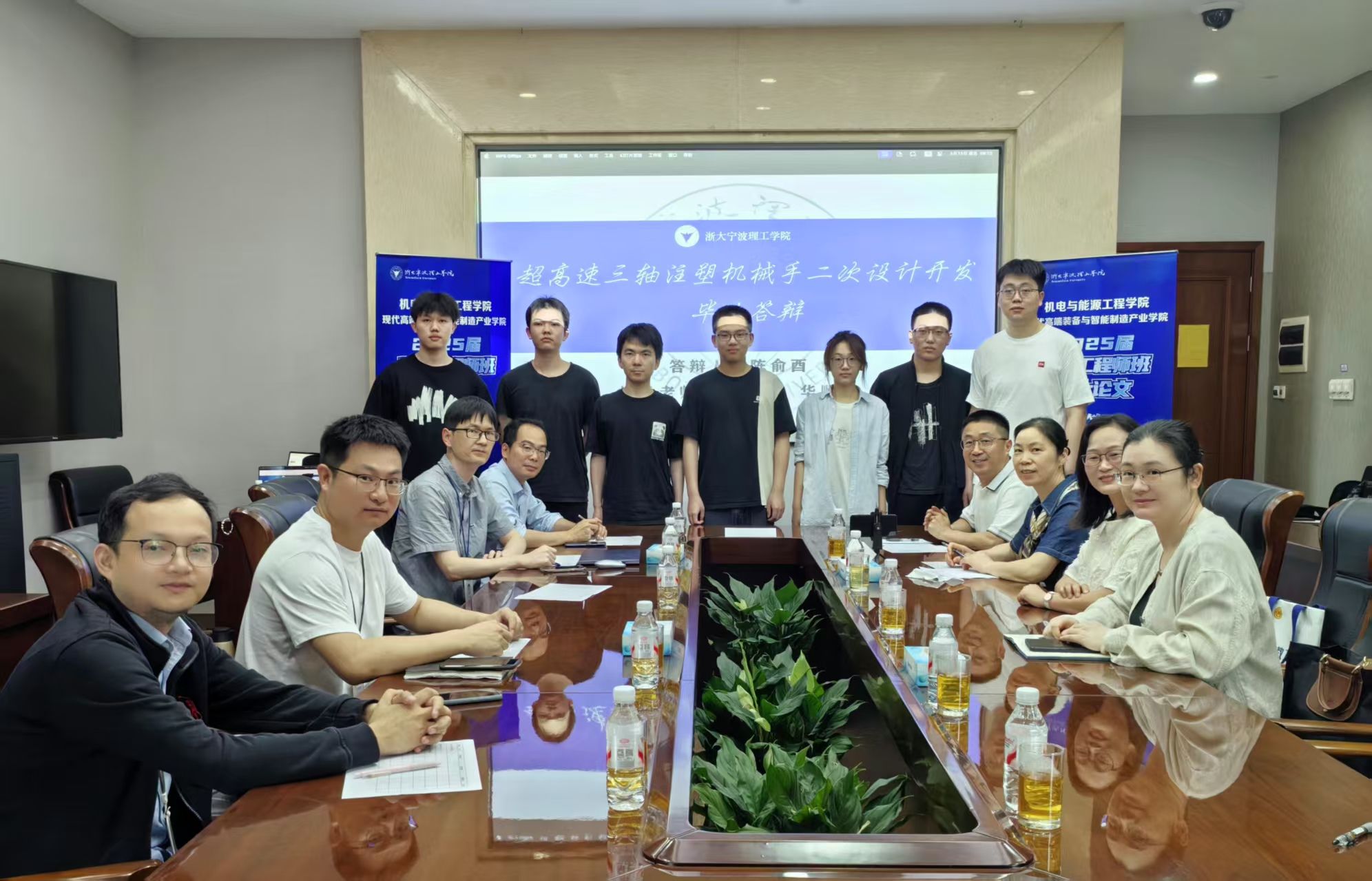 作为国家级制造业单项冠军企业,海天集团深度参与“海天工程师班”培养全流程。自2021年第一届“海天工程师班”开班以来,双方以学生实习、企业参与教学、学生参与企业项目、学生真刀真枪搞毕业设计为抓手,通过企业人才供应链的有效嵌入,校企多维互动,构建了全方位、多层次、深融汇的产教融合育人体系;创新“双导师制”(企业工程师+学校教师)指导毕业设计,近五年校企联合指导学生毕业生论文(设计)累计达70余人,构建了“实习-毕业设计-就业”贯通式培养链,入职海天集团毕业生人数超过100人。2025届7名学生进驻海天集团完成毕业论文,经答辩人汇报、答辩委员提问、答辩人现场回答和答辩委员打分等环节,所有学生均顺利通过毕业设计答辩,答辩委员和企业专家对本次参加答辩的毕业设计给予了高度评价。