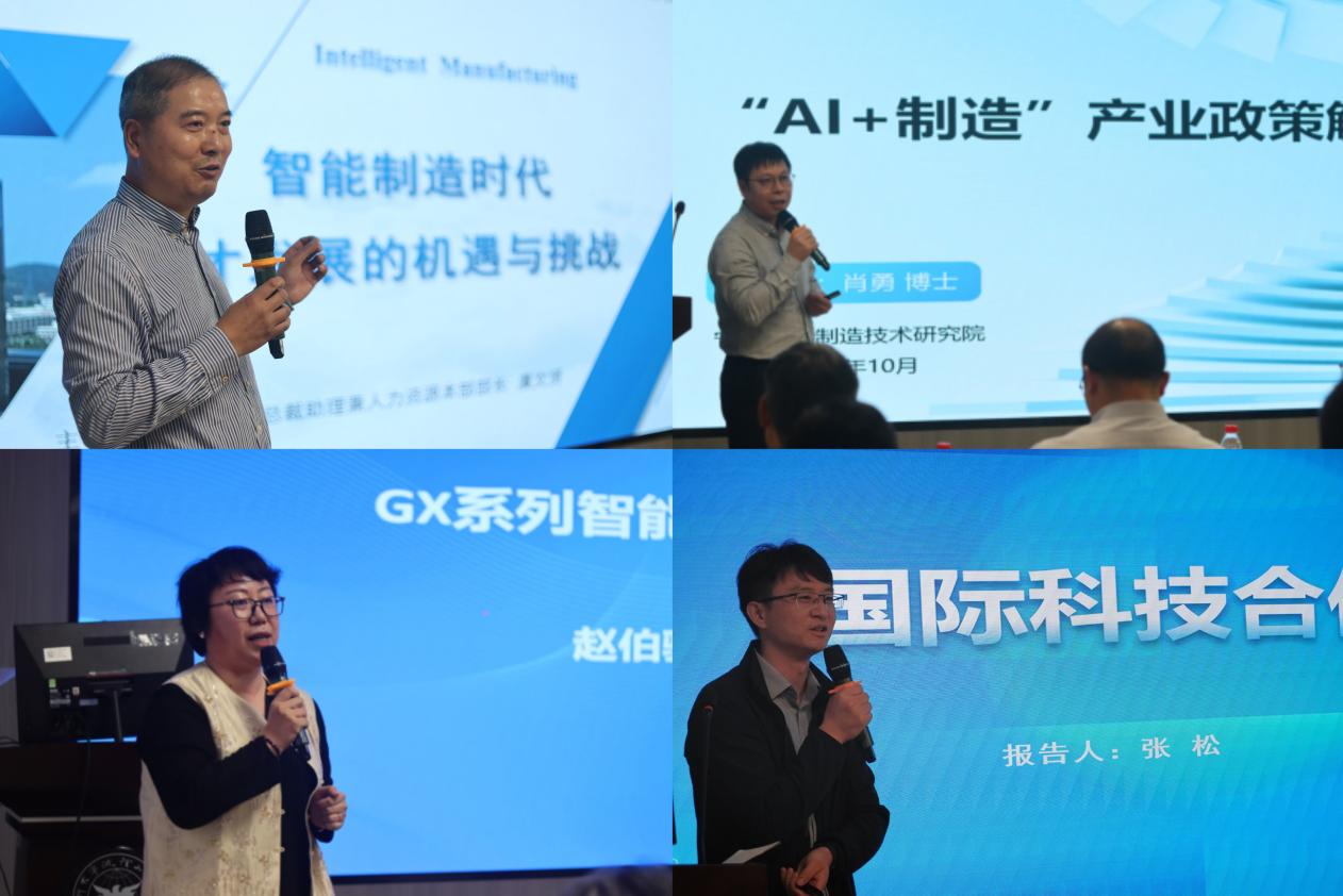 本次论坛聚焦智能制造前沿趋势,邀请多位行业专家作专题分享。虞文贤以“智能制造时代人才发展的机遇与挑战”为题,结合行业发展趋势,深入剖析了智能制造领域人才需求的变化与未来发展方向。肖勇系统解读了“AI+制造”的国家战略与地方支持政策,为高校与企业精准把握融合发展机遇提供了专业指引。赵伯骅详细介绍了“GX系列智能伺服一体机”的设计创新与应用场景,生动展示了国产智能装备的技术突破与产业化成果。张松分享了国际科技合作载体及项目申请流程,涵盖从策划、申报到执行的全流程要点。