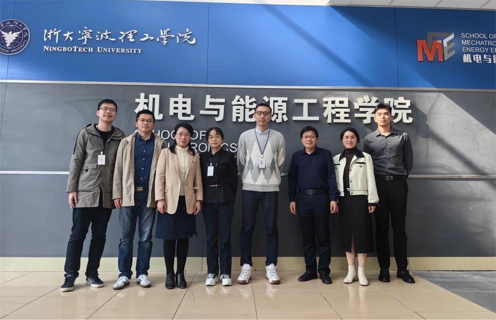 11月23日上午, 海天集团股份有限公司人力资源本部招聘经理张程斐、海天智胜金属成型设备有限公司办公室主任李玲艳等一行4人到浙大宁波理工学院机电与能源工程学院就双方后续的产学研深度合作进行对接洽谈。学院党委书记江美芬,副院长张学昌,副书记林建英,钱孝华老师和辅导员刘杜娟参加了会议。