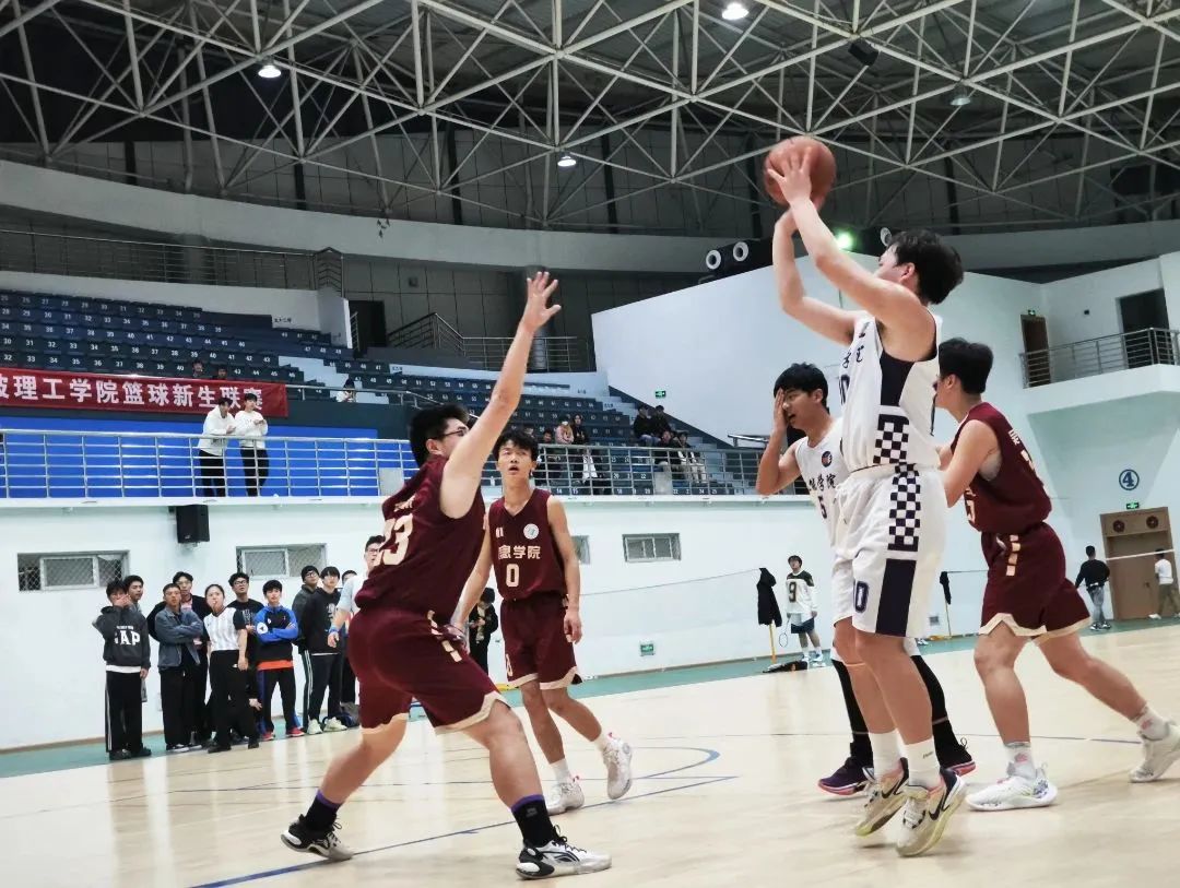 11月23日18:30,校篮球新生联赛决赛在体育馆举行,机能学院与信息学院新生篮球队角逐本次比赛的冠军。